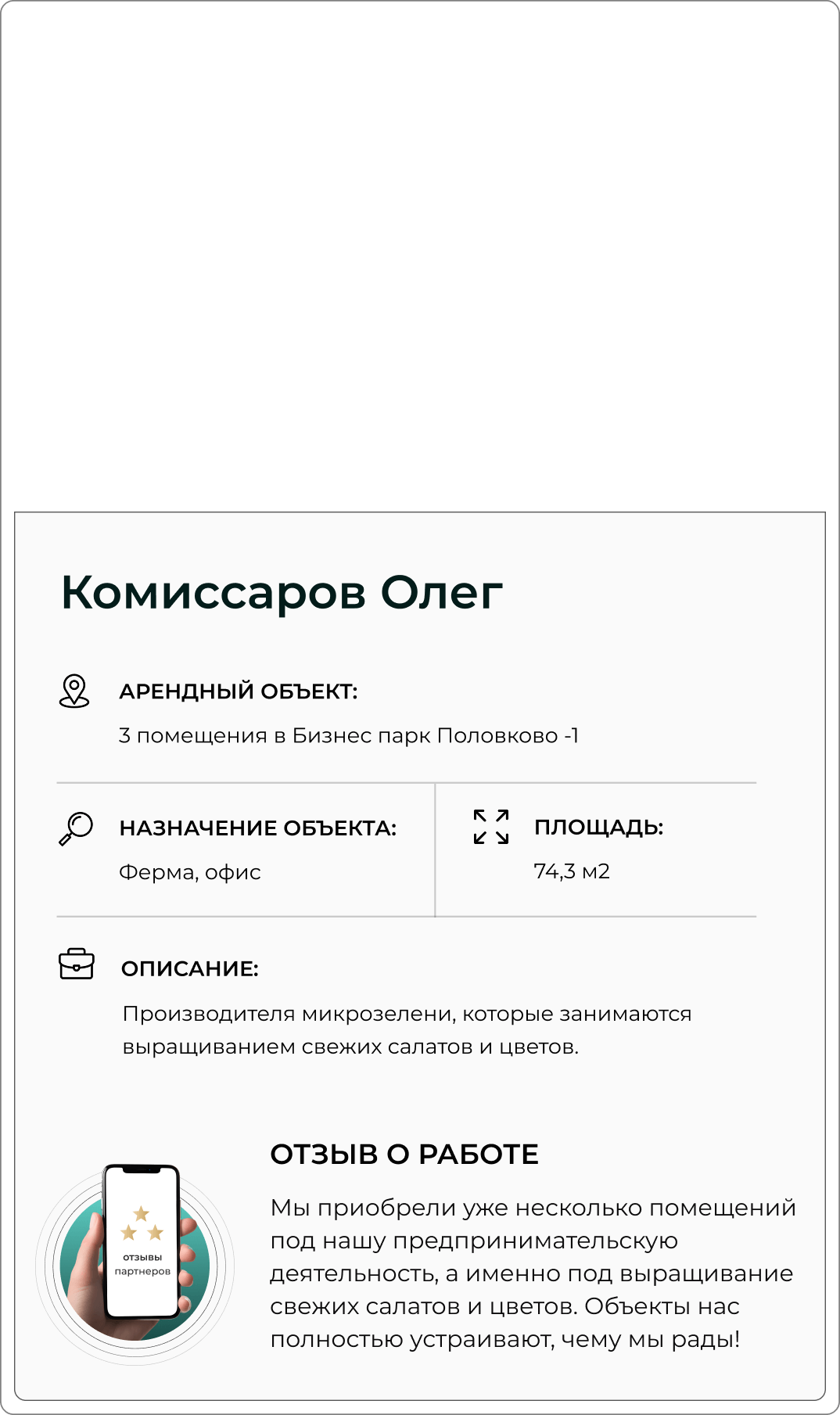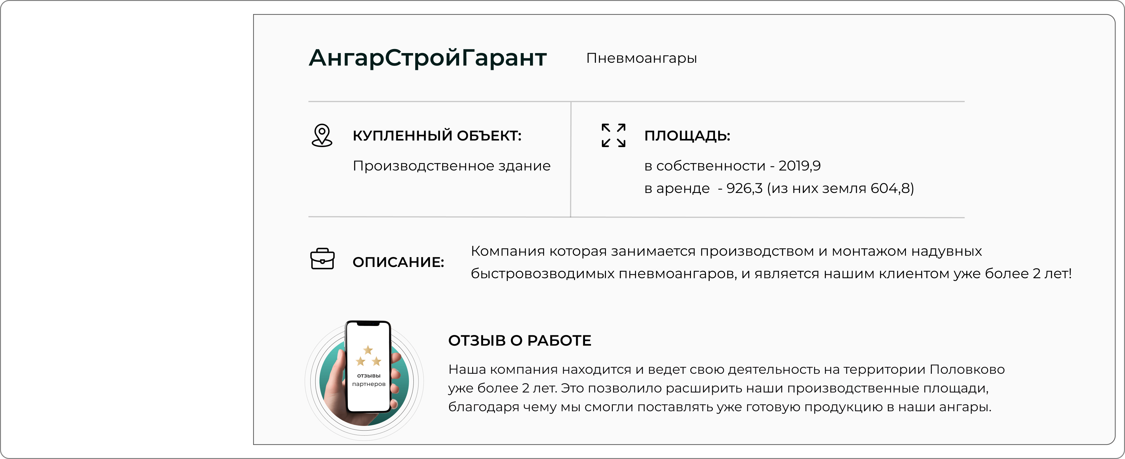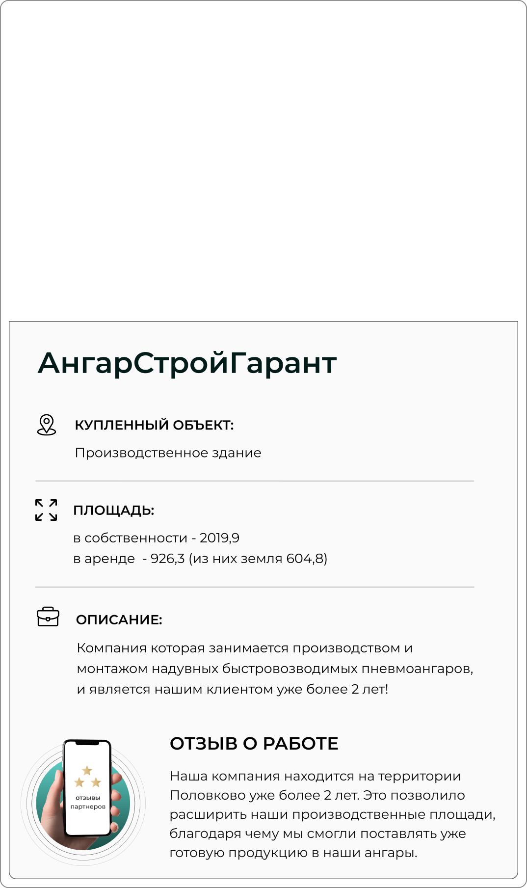 Лёгкое производство (упаковка, сборка, ремонт) Склады и логистика Интернет-магазины и распределительные центры Мастерские, студии, крафтовые производства Автосервисы, шиномонтаж, покраска и т.д.