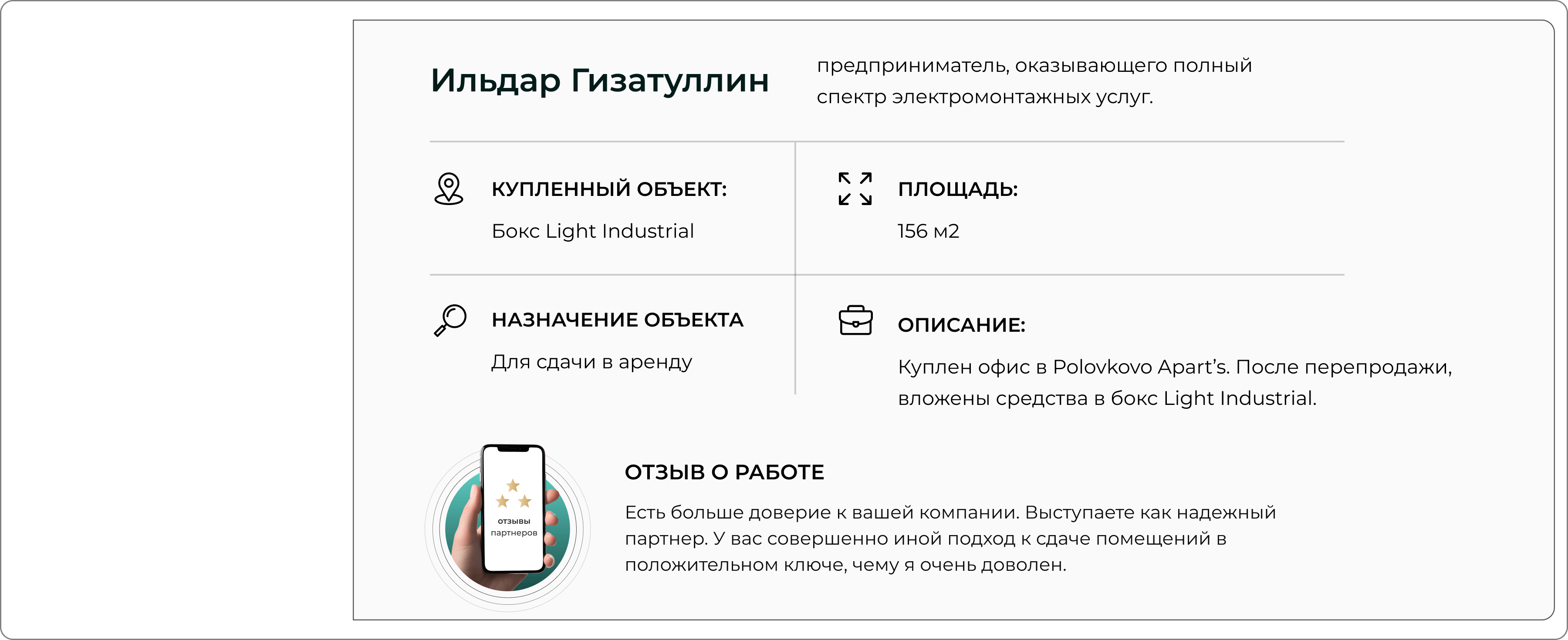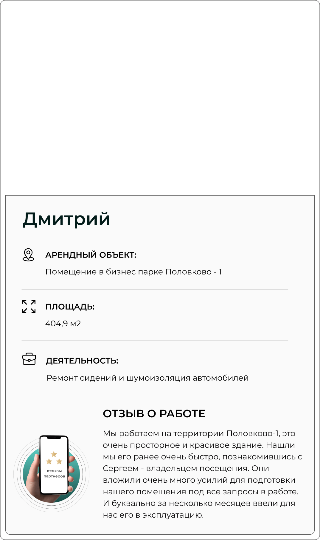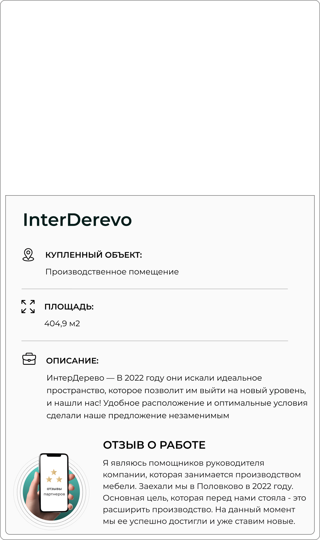 Лёгкое производство (упаковка, сборка, ремонт) Склады и логистика Интернет-магазины и распределительные центры Мастерские, студии, крафтовые производства Автосервисы, шиномонтаж, покраска и т.д.