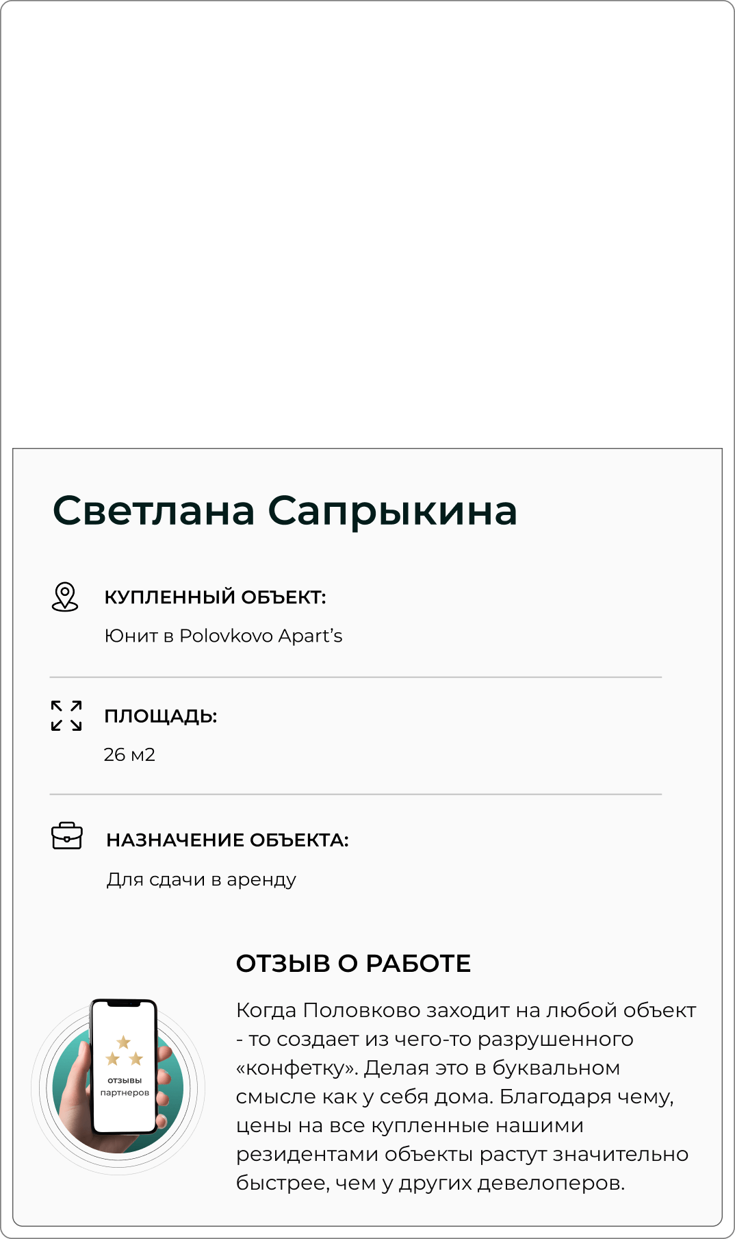 Уникальный продукт, который рынок принял на 100% — все апартаменты проданы за 6 месяцев. Старт стройки - январь 2025. Старт эксплуатации — декабрь 2025.