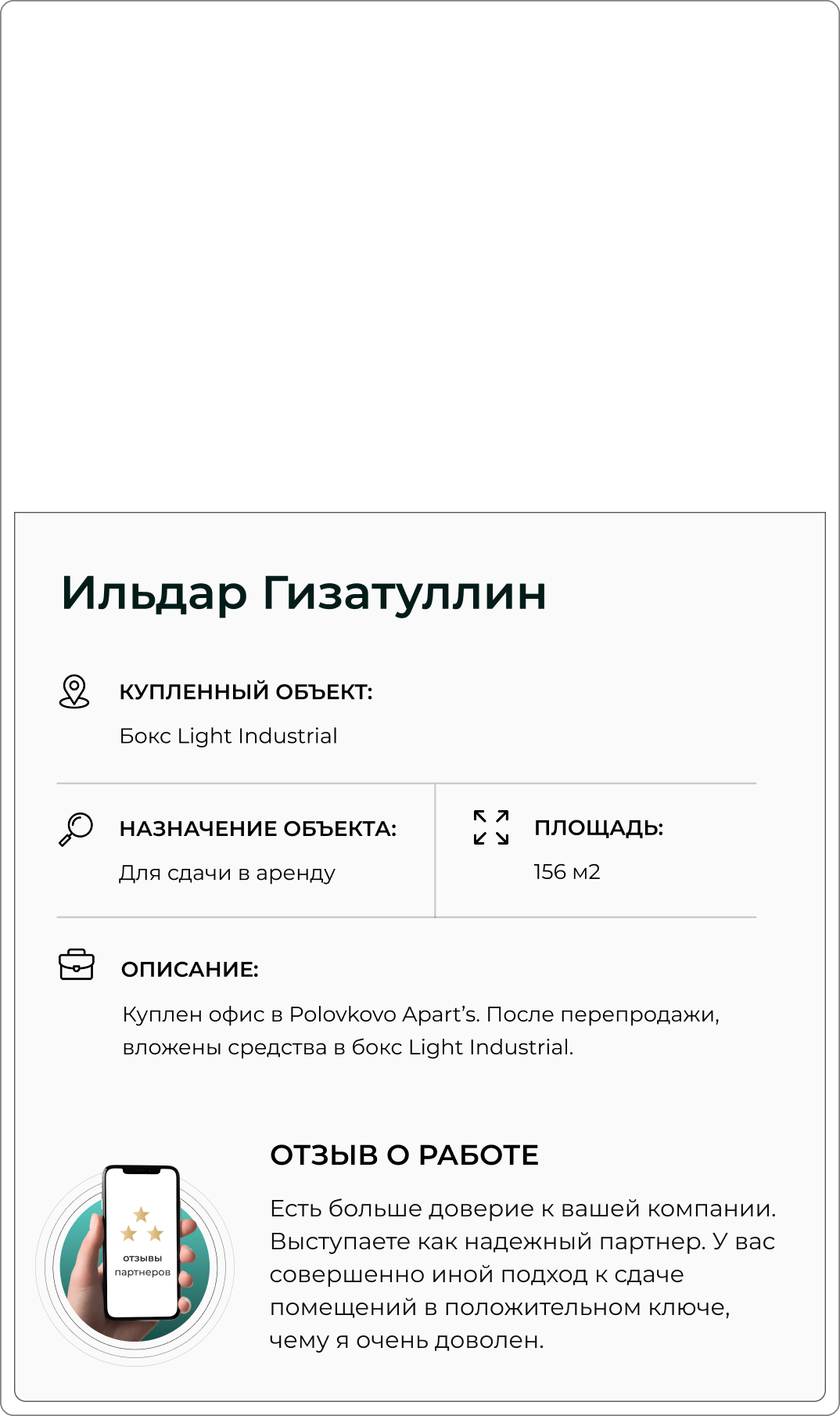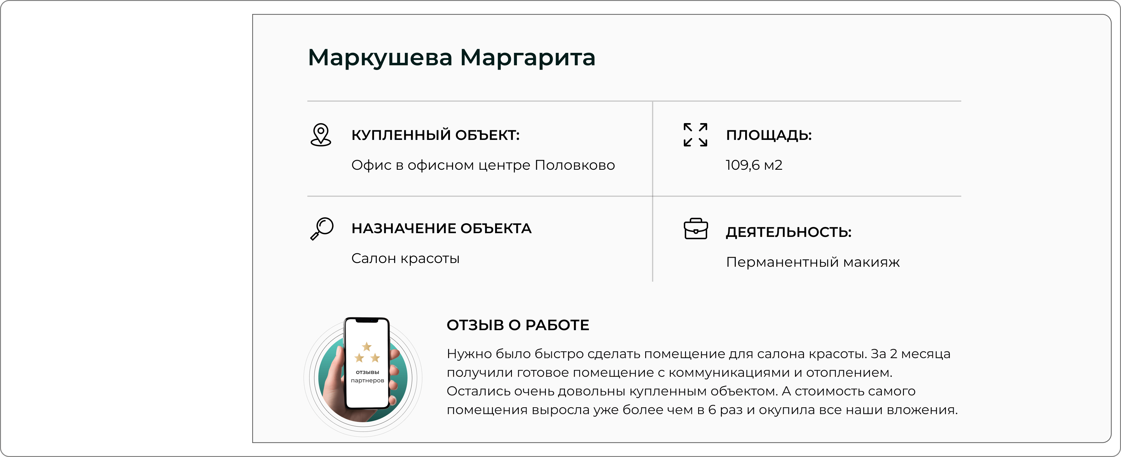 Без скрытых вложений Никаких доработок — вы просто заезжаете и начинаете работать